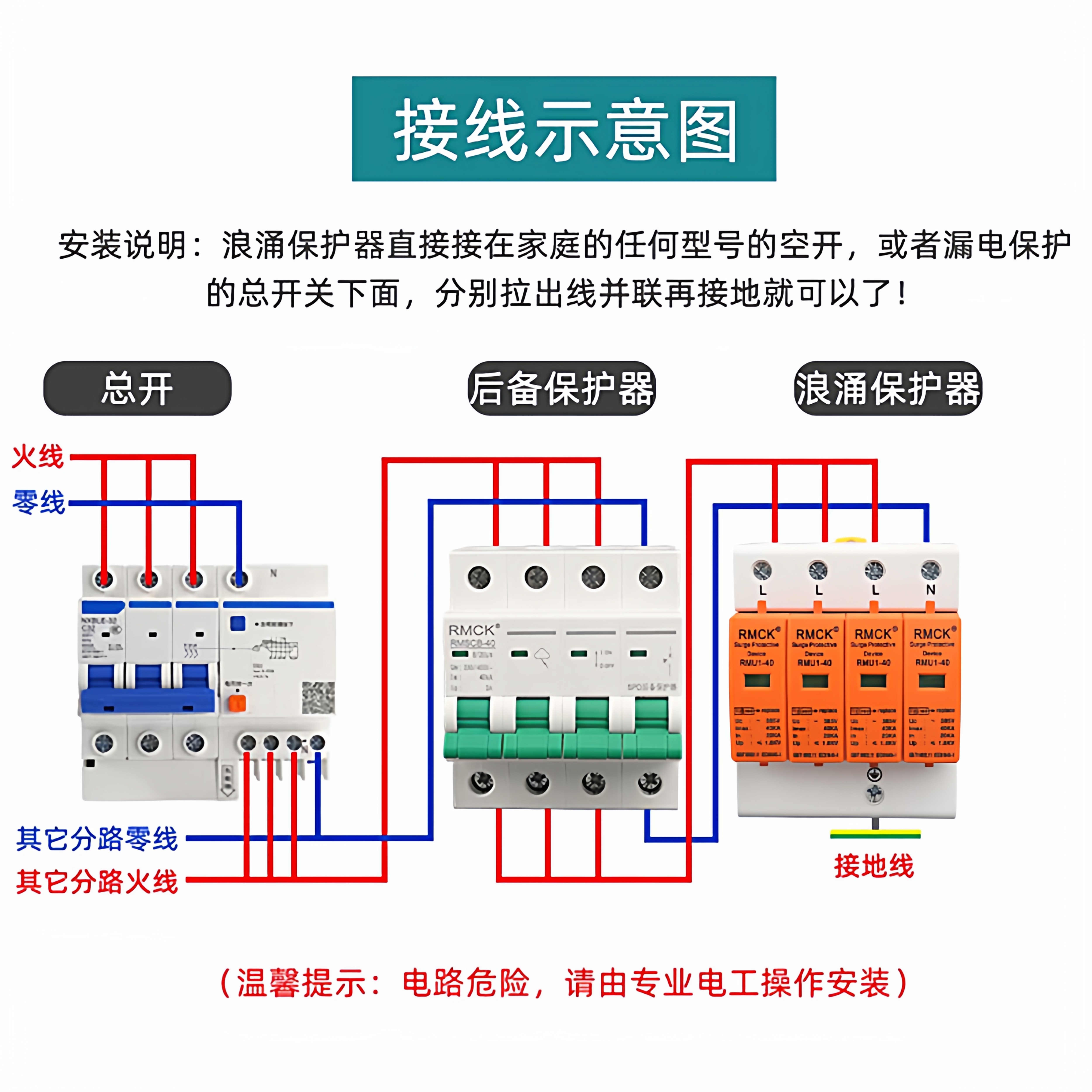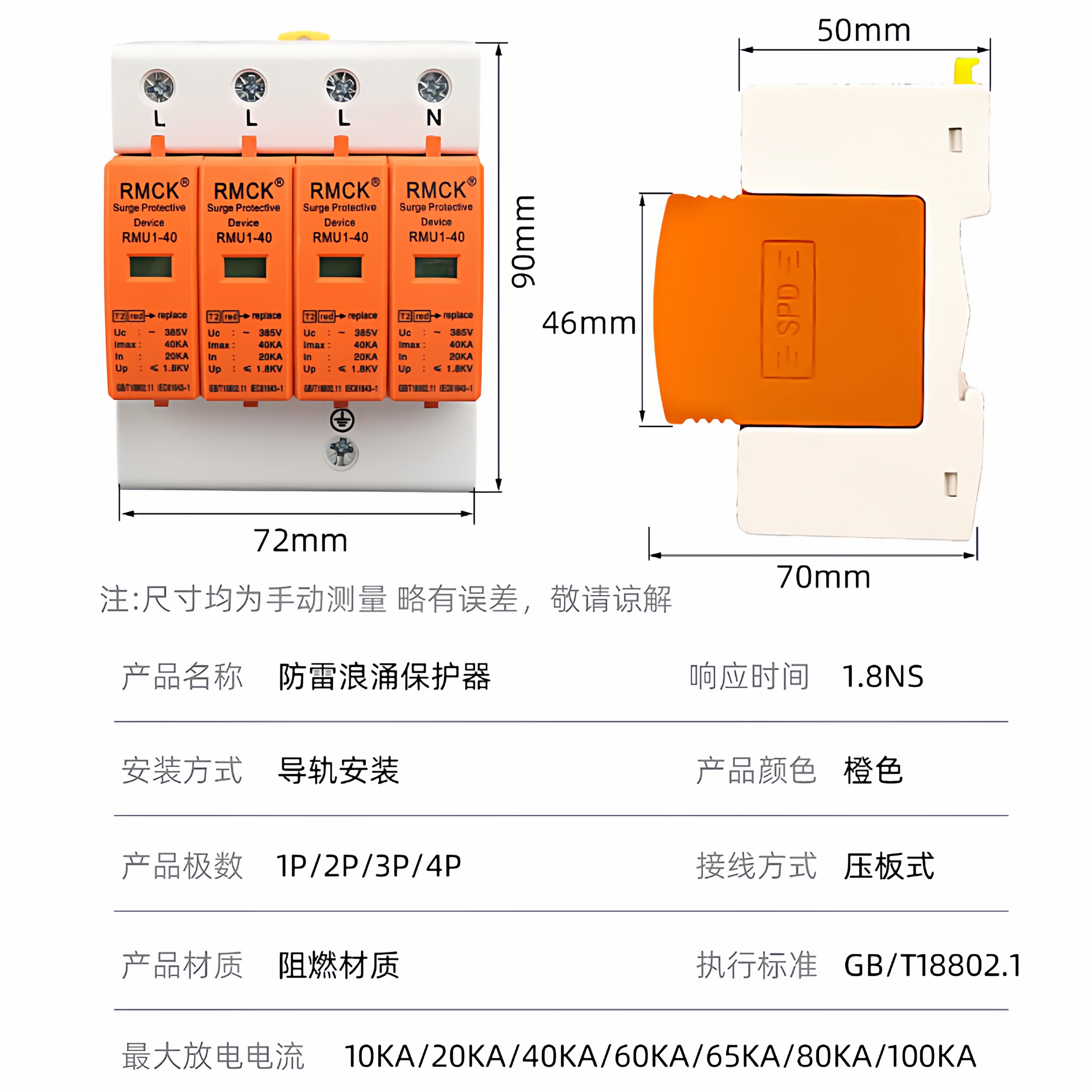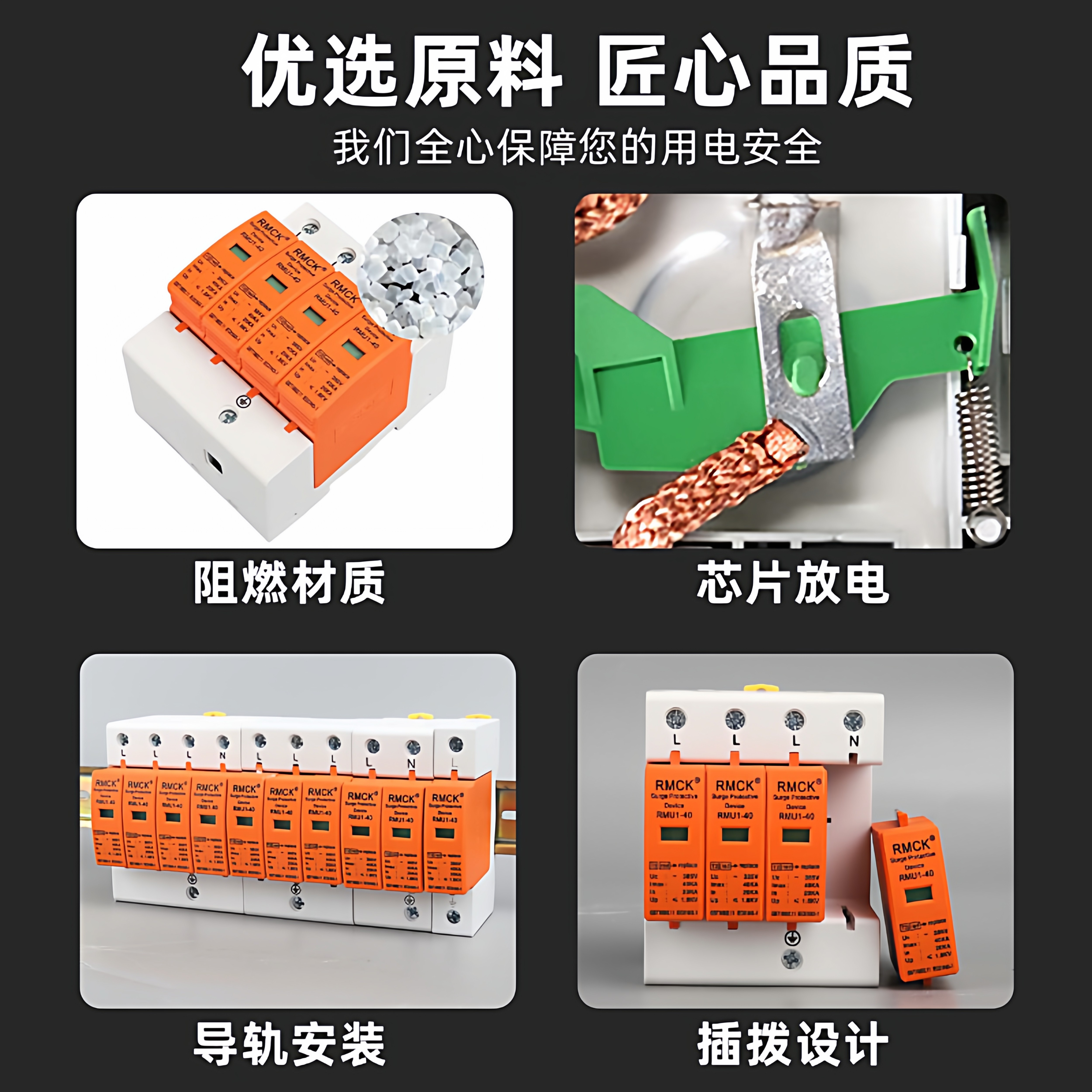 推荐理由:T2级浪涌保护器8/20us电涌防雷器4P20KA40KA60KA家用防雷385V420V