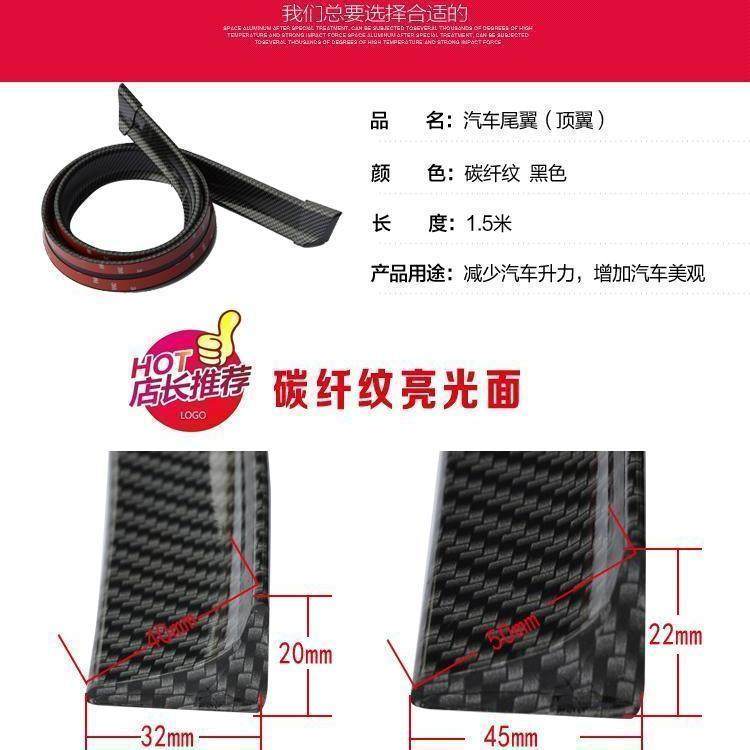 推荐理由:汽车尾翼顶翼改装通用装饰免打孔汽车碳纤纹橡胶尾翼两厢三厢车