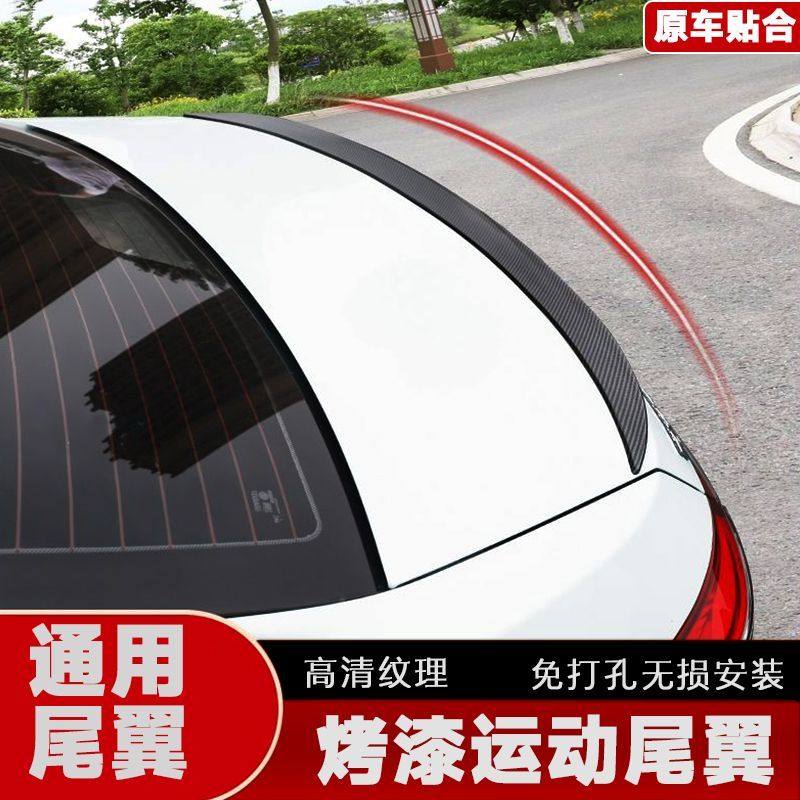 汽车尾翼顶翼改装通用装饰免打孔汽车碳纤纹橡胶尾翼两厢三厢车