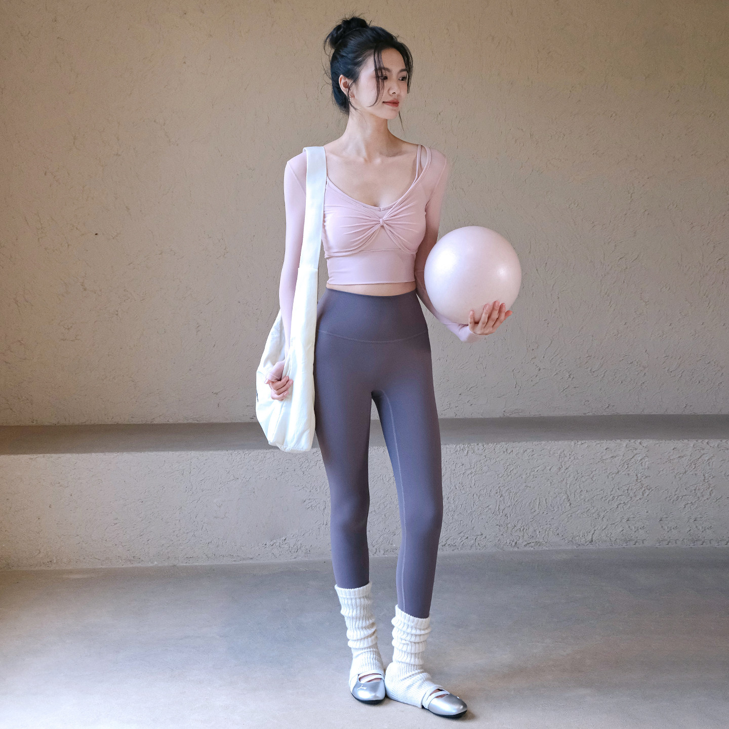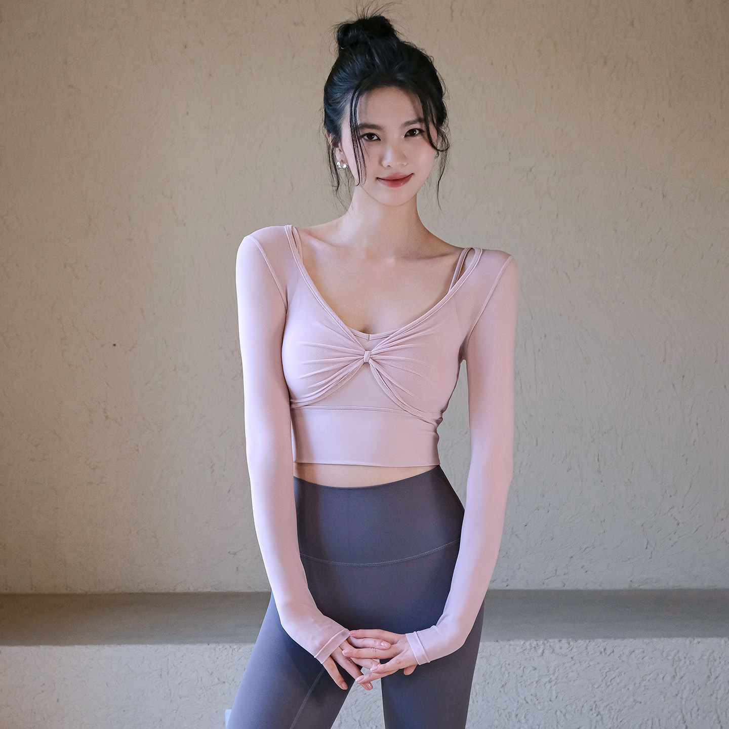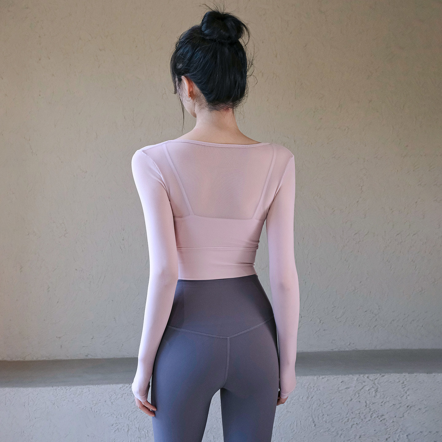 Ackdcs带胸垫瑜伽长袖女秋网纱透气健身T恤专业跑步训练运动上衣