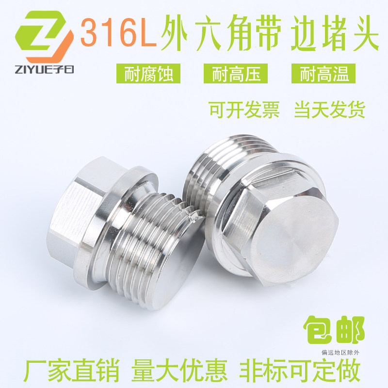 316L不锈钢外六角法兰边带边阻流塞公制英制G1/21/4油塞M10*12346