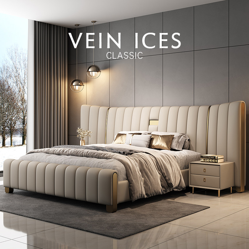 琪琪家园/轻奢宽屏床别墅大平层主卧高端大气设计师款双人床真皮