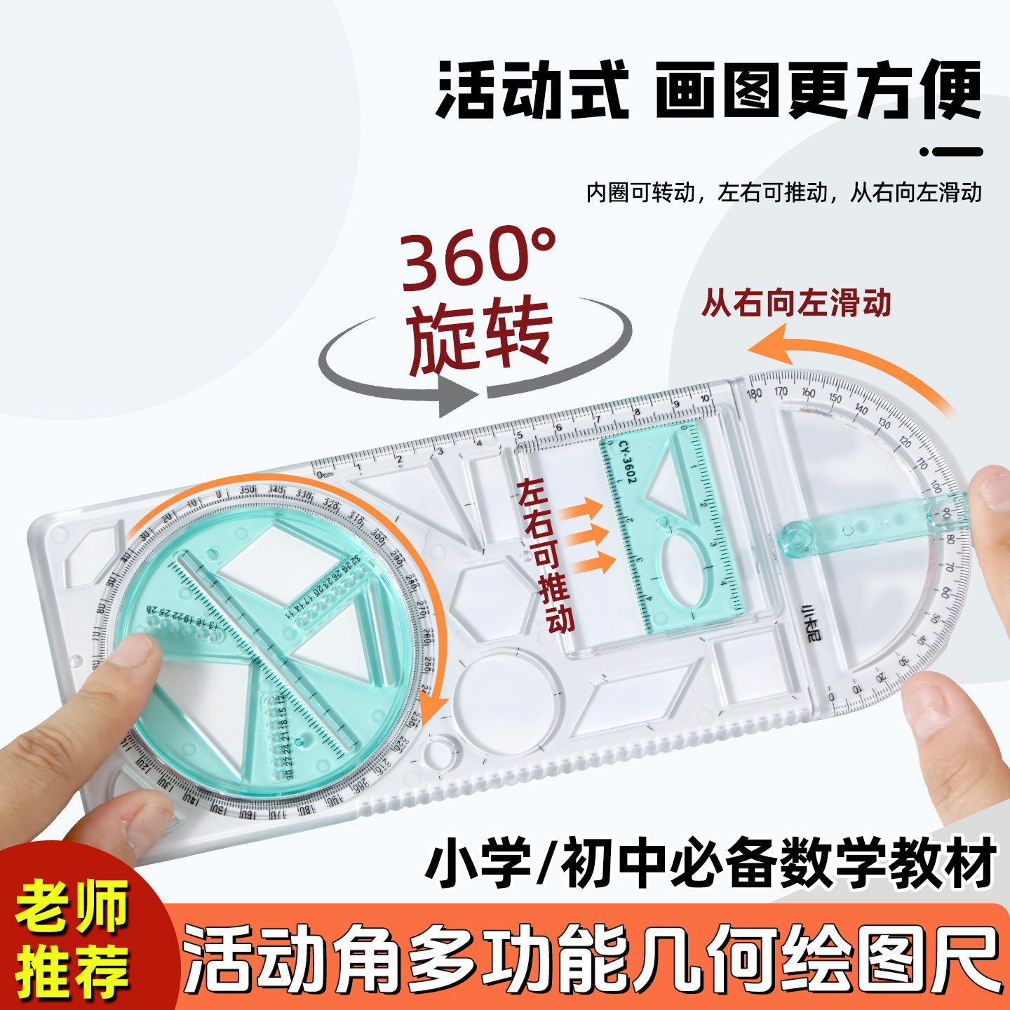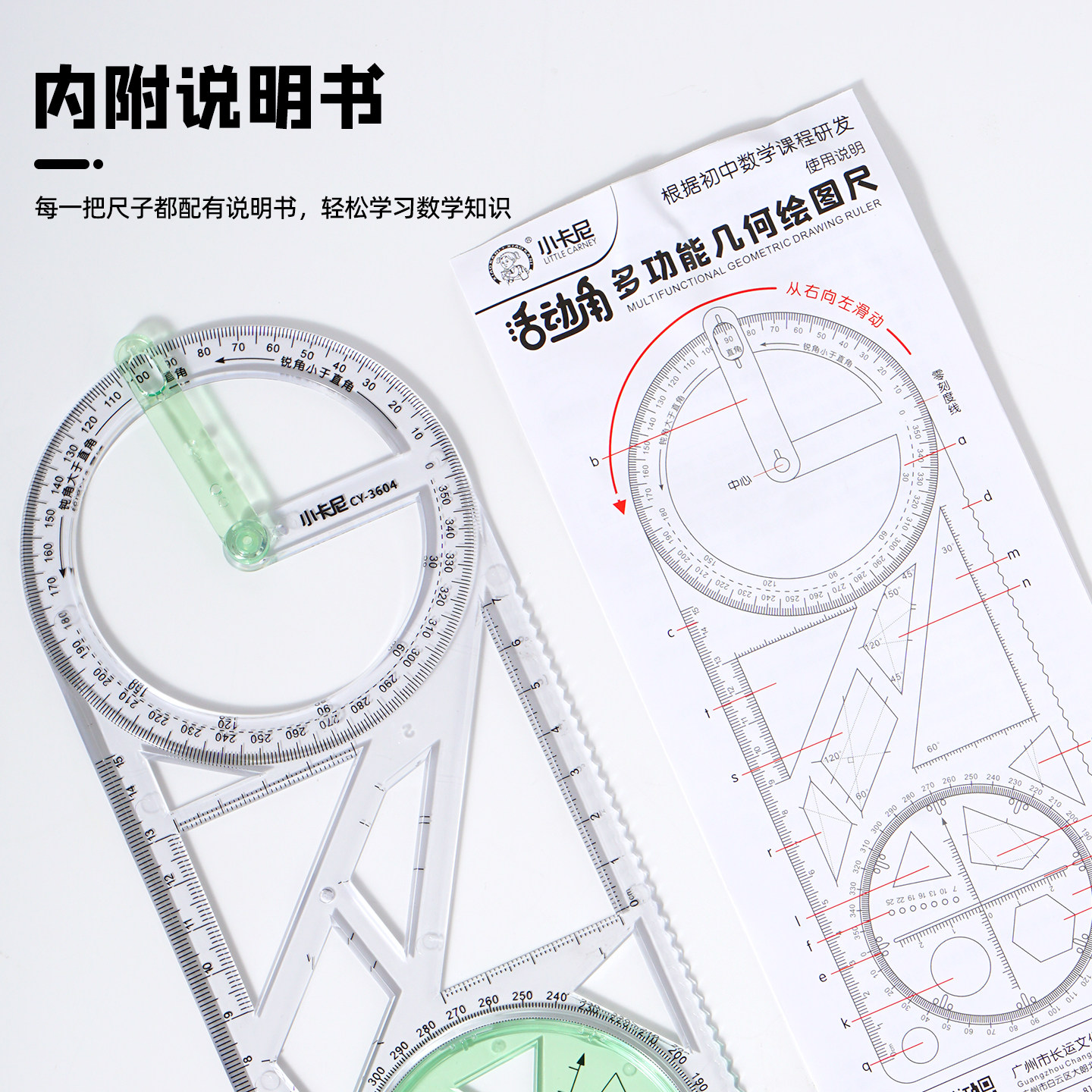 推荐理由:多功能数学绘图尺中小学生几何尺初高中三角尺量角器几何函数尺子
