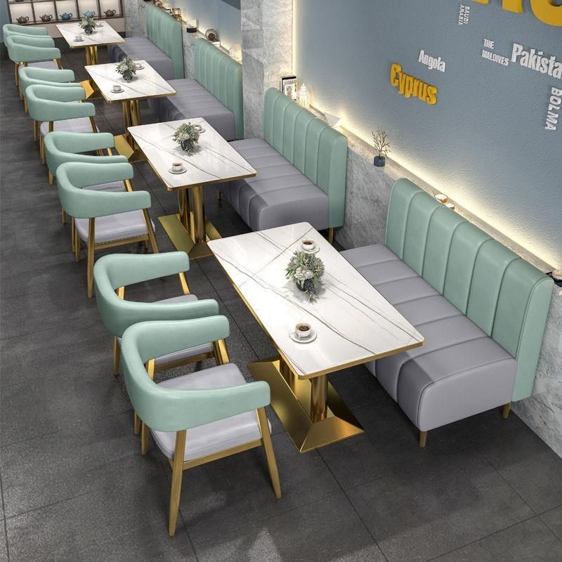 网红甜品奶茶店桌椅组合简约西餐厅咖啡厅料理店拼色靠墙沙发卡座