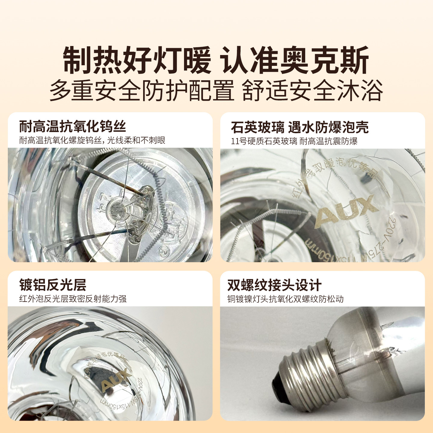 奥克斯壁挂式浴霸卫生间取暖灯暖风暖一体防水耐用灯泡浴室免打孔