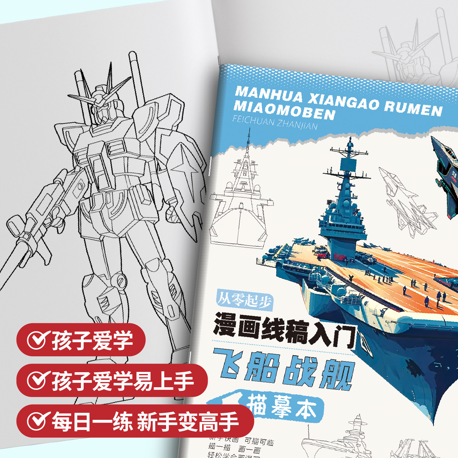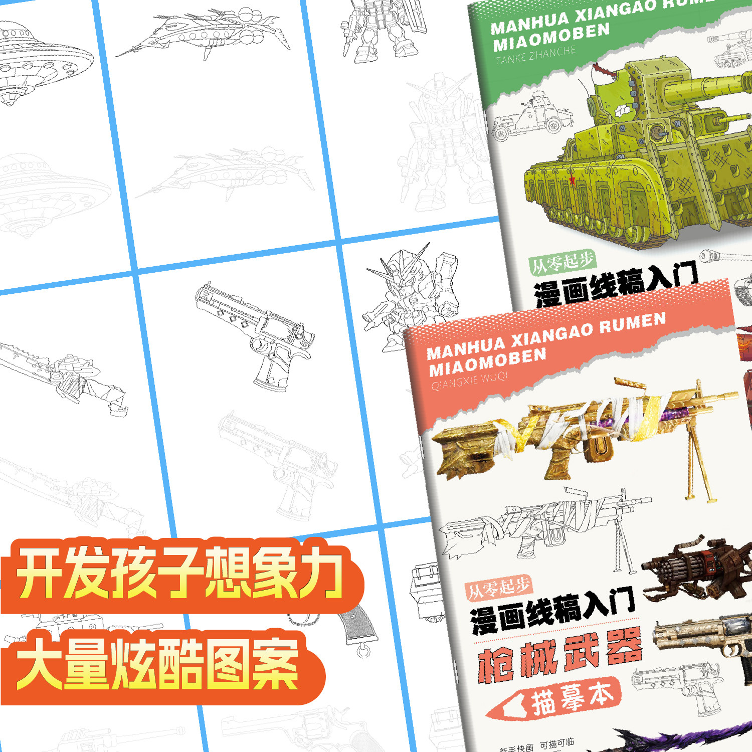 推荐理由:从零起步漫画线稿入门坦克战车机甲战士枪械武器飞船战舰描摹本装甲兵器军事兵迷控笔练习描摹画册初学绘画本