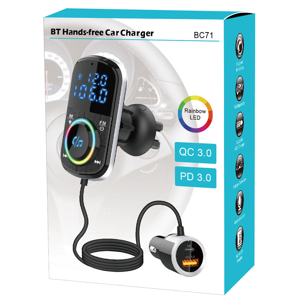 BC71车载mp3播放器蓝牙免提fm发射器插卡QC3.0/PD快充车充汽车mp3