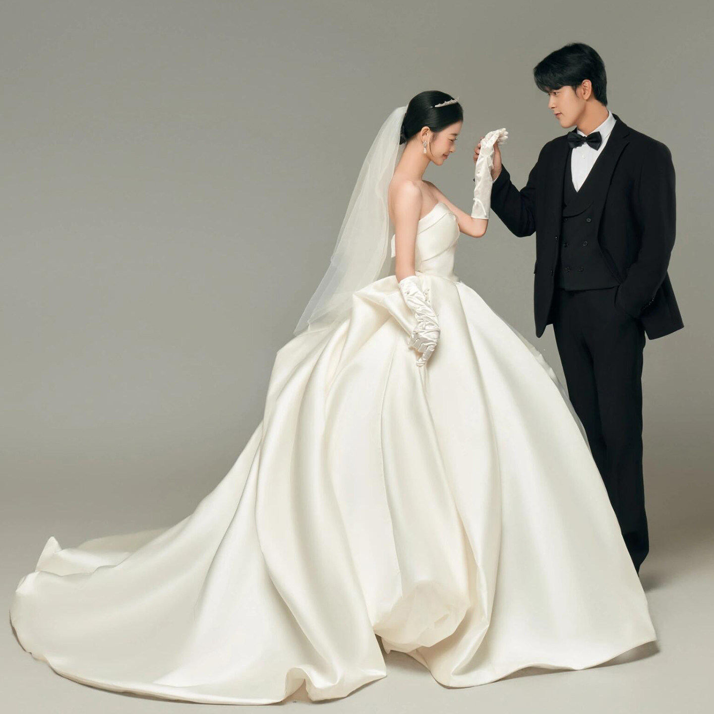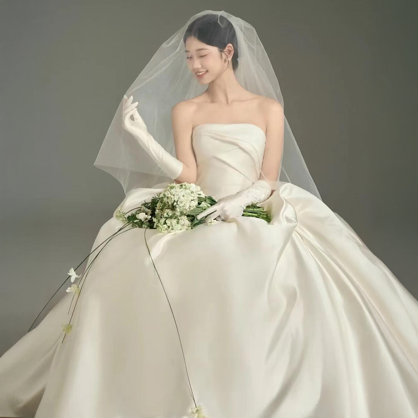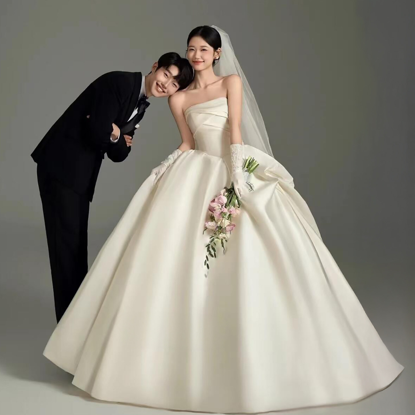 影楼拍照主题服装新款情侣写真拍照摄影礼服室内韩版缎面抹胸婚纱