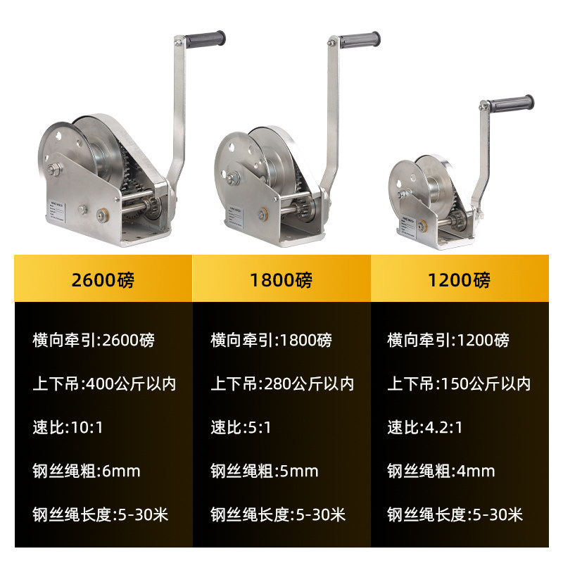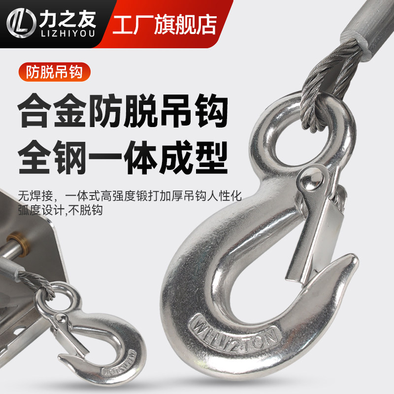 推荐理由:手摇绞盘304不锈钢双向自锁小型家用绞车手动卷扬机起重牵引葫芦