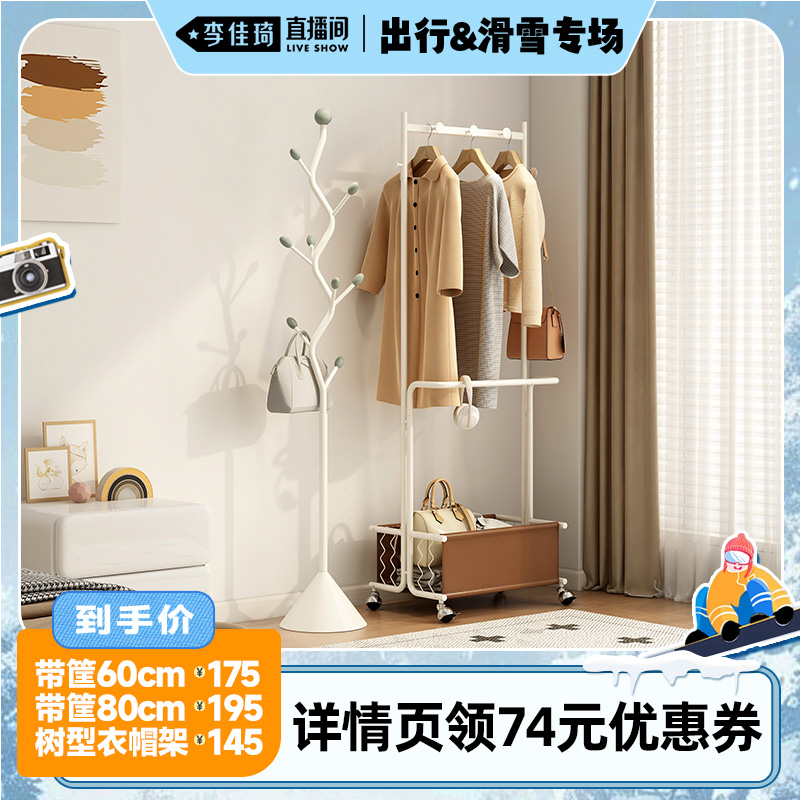 【李佳琦直播间出行&滑雪专场】速立普衣帽架卧室落地家用挂衣架
