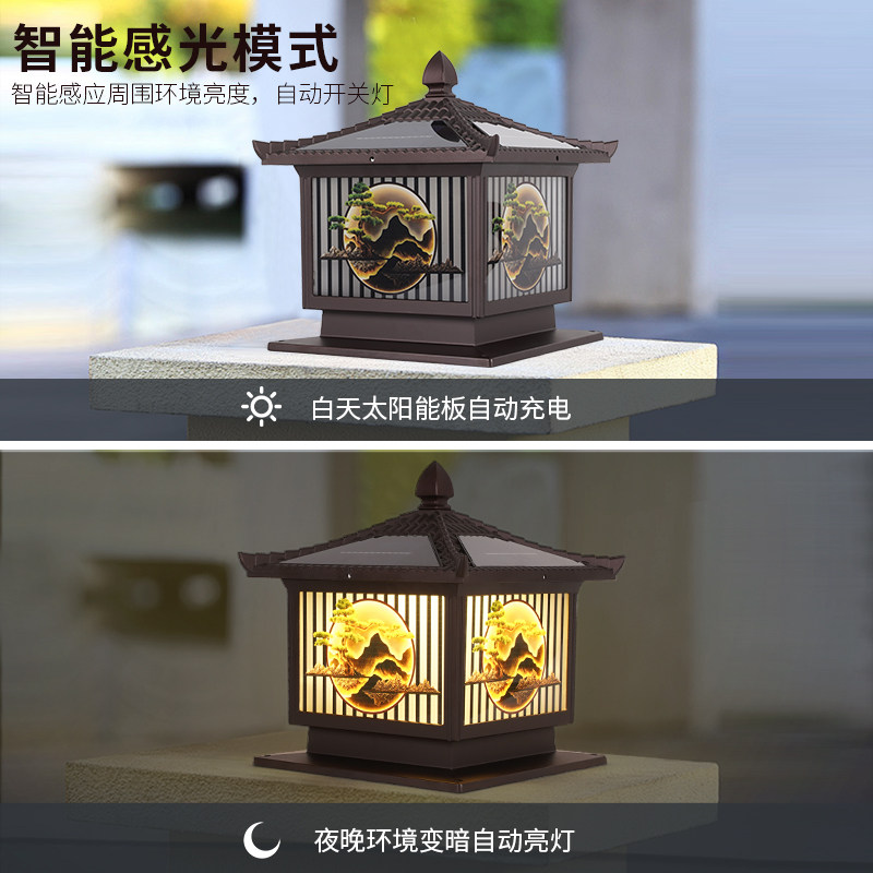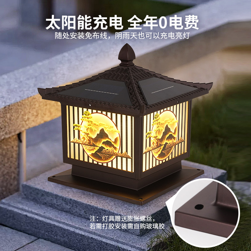 推荐理由:太阳能柱头灯别墅庭院围墙接电款防水新款铝合金大门灯门柱灯户外