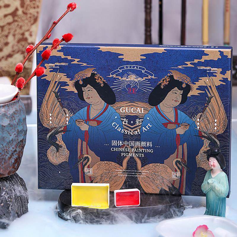 鲁本斯青蓝中国画固体24色国画颜料初学者套装用品工具全套固体国