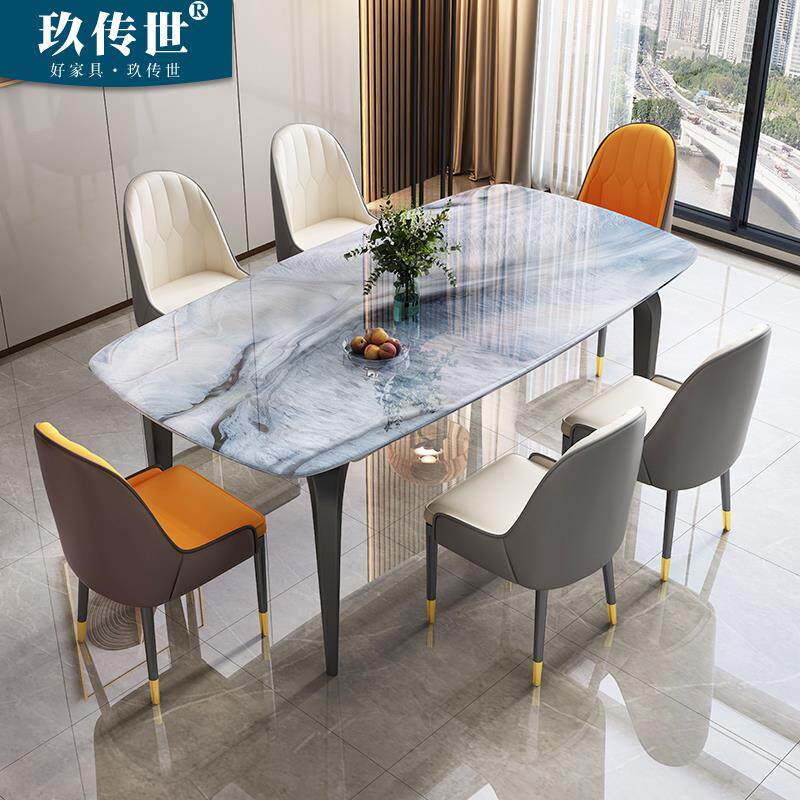 轻奢超晶石餐桌椅组合现代简约岩板奢石微晶石长方形大理石吃饭桌
