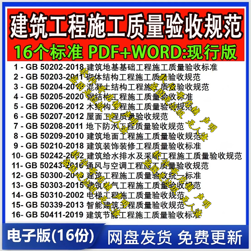16份常用建筑工程施工质量验收规范全套标准 验收规范PDF/WORD