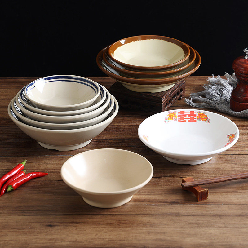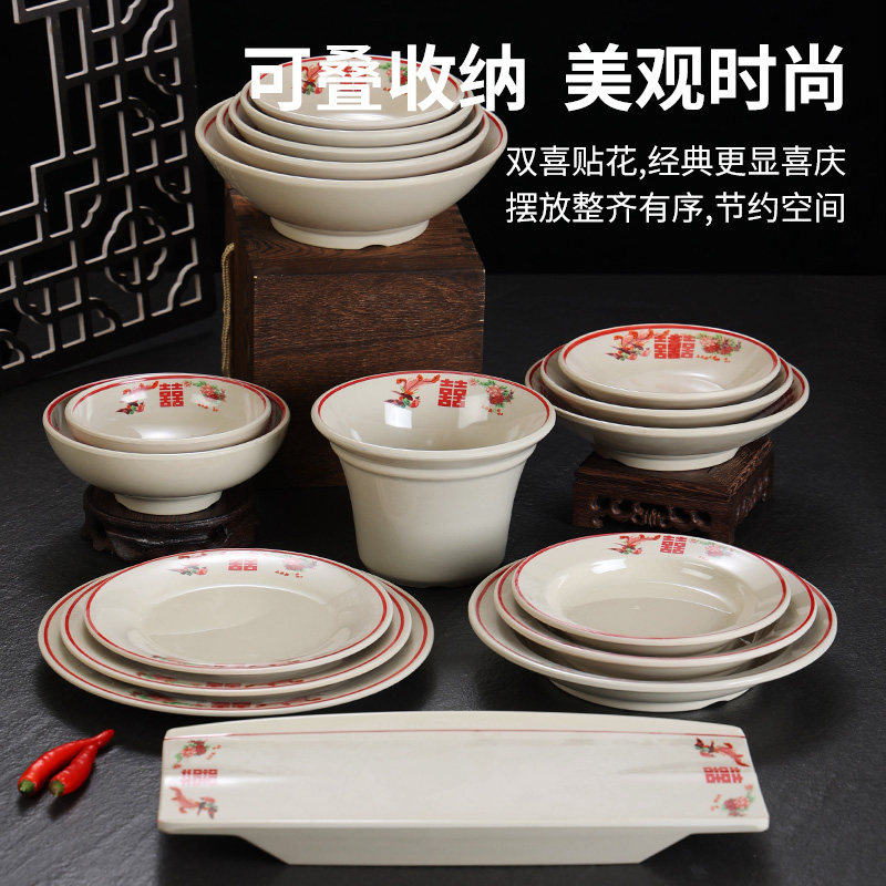 密胺老式双囍碗复古仿瓷碗怀旧老火锅店朱光玉网红重庆市井喜字碗