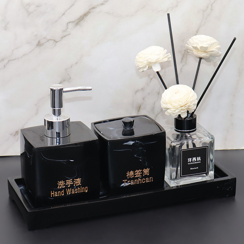 推荐理由:酒店样板间浴室用品套件洗手液瓶子皂碟卫生间托盘套装样板房摆件