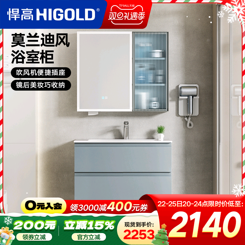 悍高浴室柜组合实木轻奢智能镜柜套装新中式无缝一体盆洗脸盆