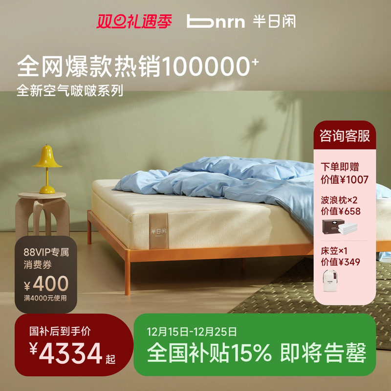 【政府补贴15%】半日闲空气啵啵护脊弹簧床垫记忆棉席梦思软床垫
