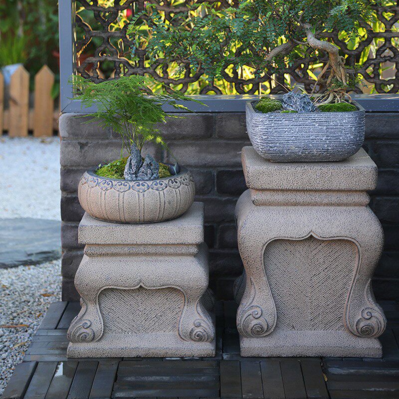 新中式庭院摆件阳台花盆底座四方墩户外实木花架 四方墩庭院装饰