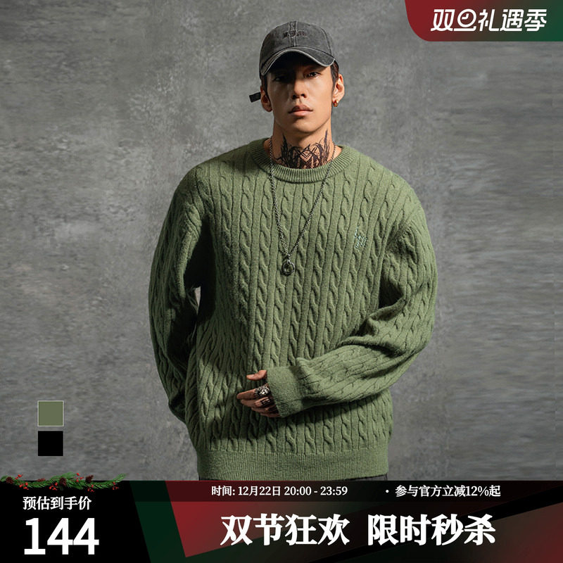 推荐理由:鹿家门新款宽松大码重磅绿色毛衣秋冬男士健身潮牌运动休闲针织衫