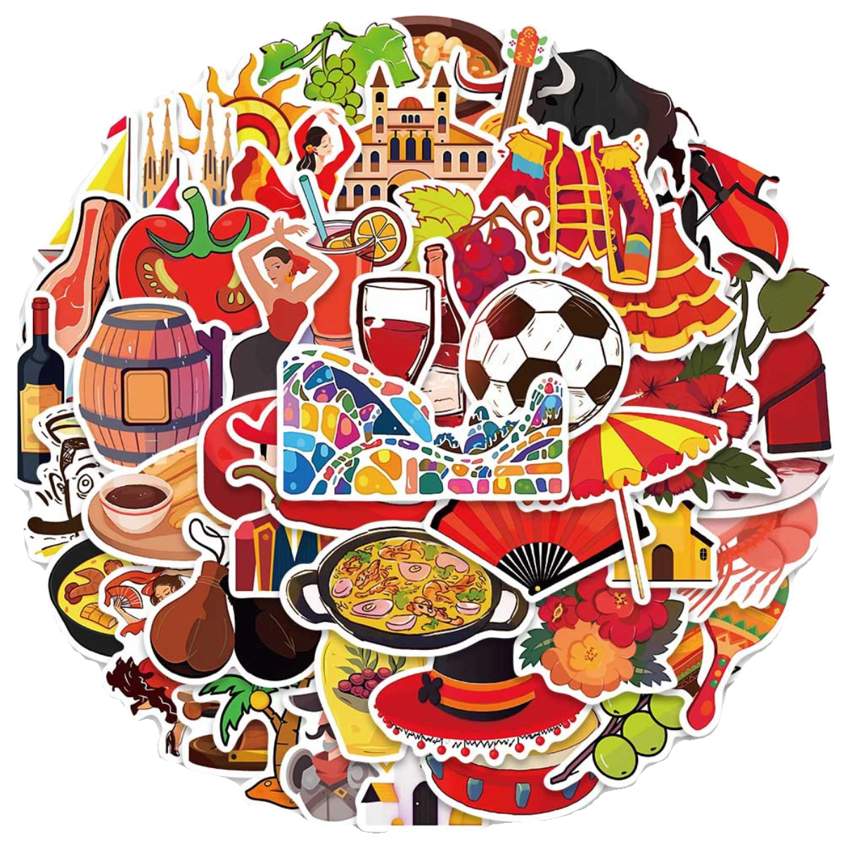50张西班牙文化卡通创意贴画笔记本电脑手机平板旅行箱子吉他贴纸