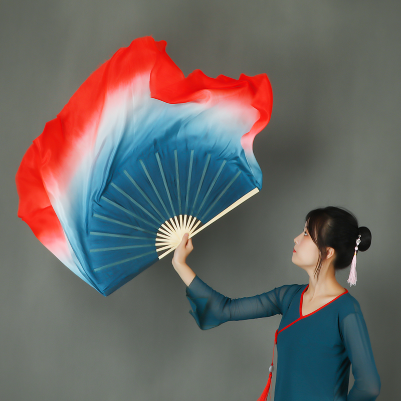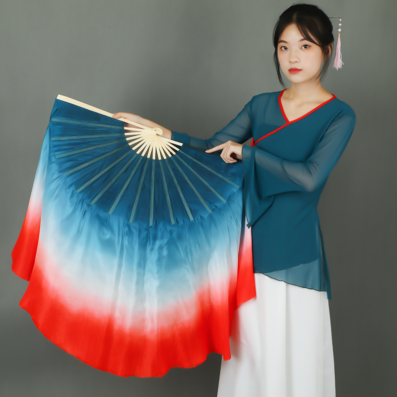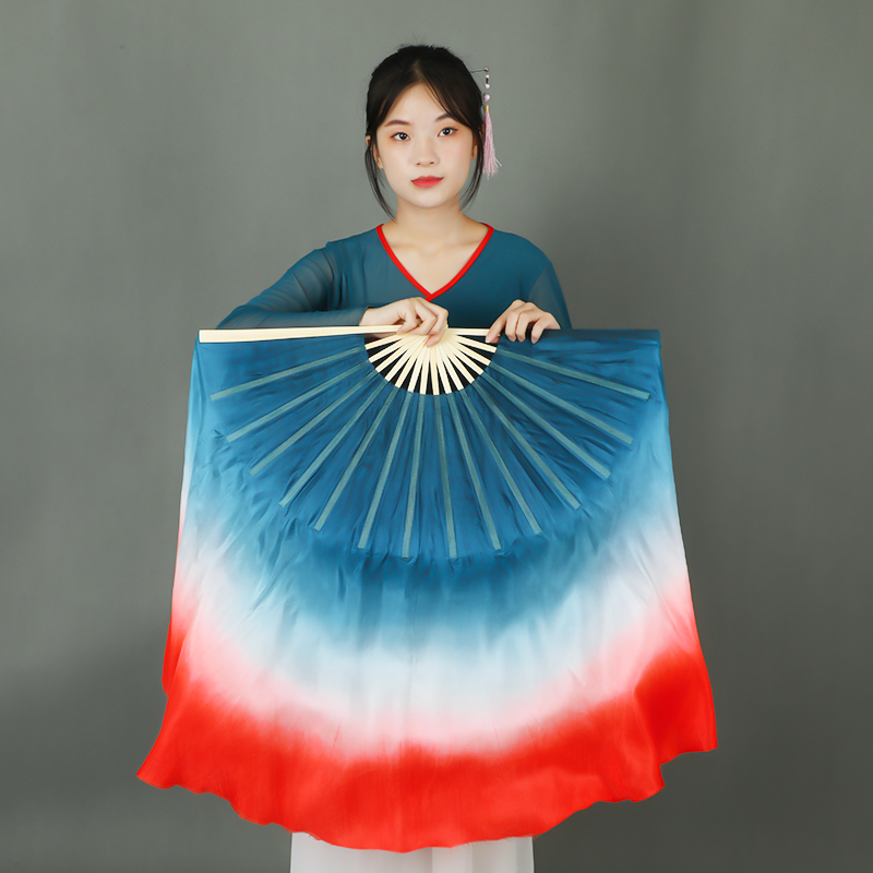 推荐理由:新款真丝舞蹈扇水墨古典风跳舞扇大墨蓝红胶州秧歌扇广场舞双面扇