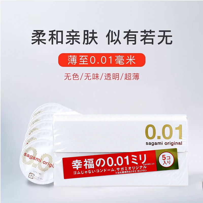 【自营】日本sagami相模001避孕套超薄安全套5只装零感润滑乳胶调