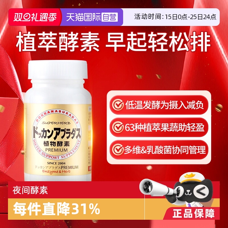 【自营】Herb健康本铺DOKKAN香槟金加强版瓶装植物酵素180粒/60粒