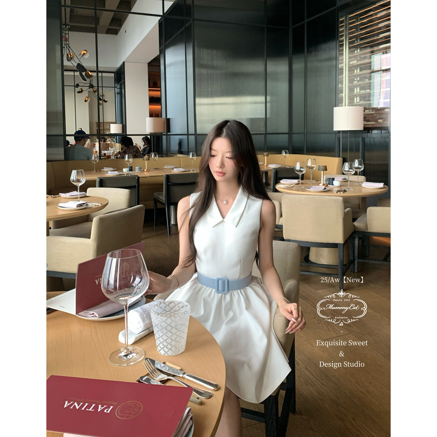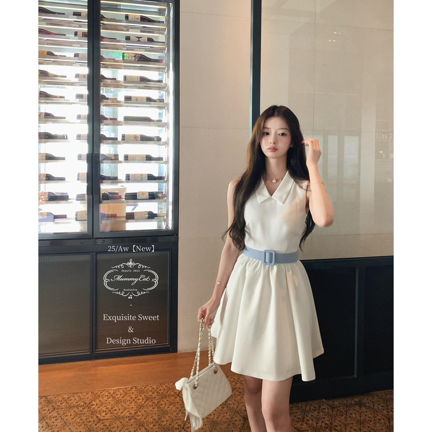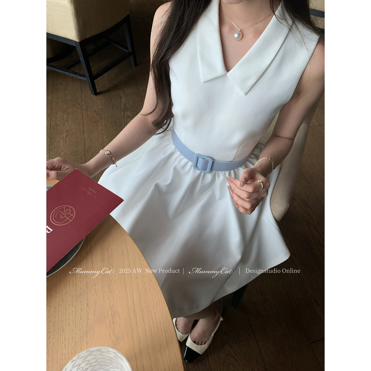 推荐理由:Mummy Cat 下蛋喵【澳白赫本】25新品优雅无袖衬衫领宽腰带礼服裙