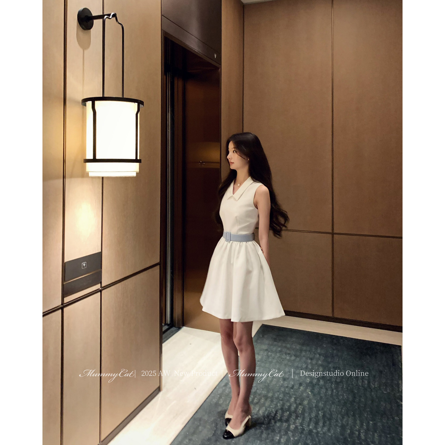 Mummy Cat 下蛋喵【澳白赫本】25新品优雅无袖衬衫领宽腰带礼服裙