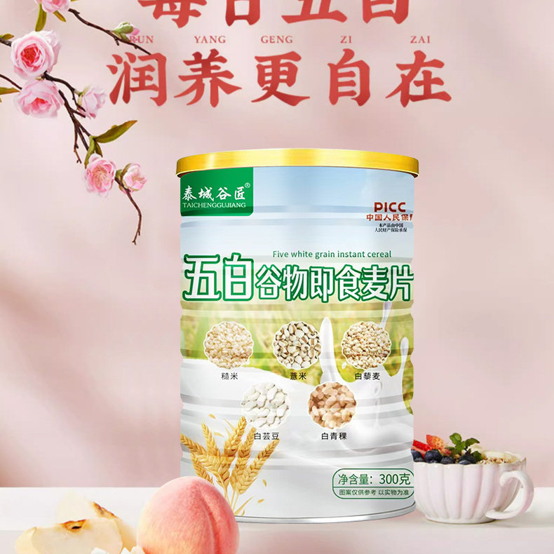五白谷物即食燕麦片无蔗糖饱腹食品代餐高维粗粮罐装官方旗舰店