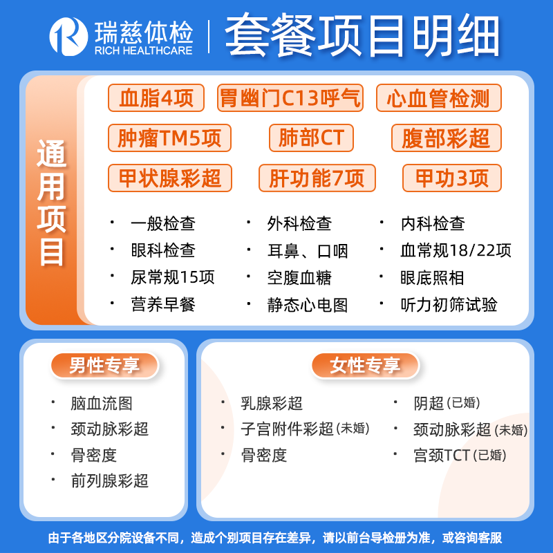 瑞慈体检套餐父母CT男女士中老青年全身兴享卡C13呼气TCT肿瘤彩超