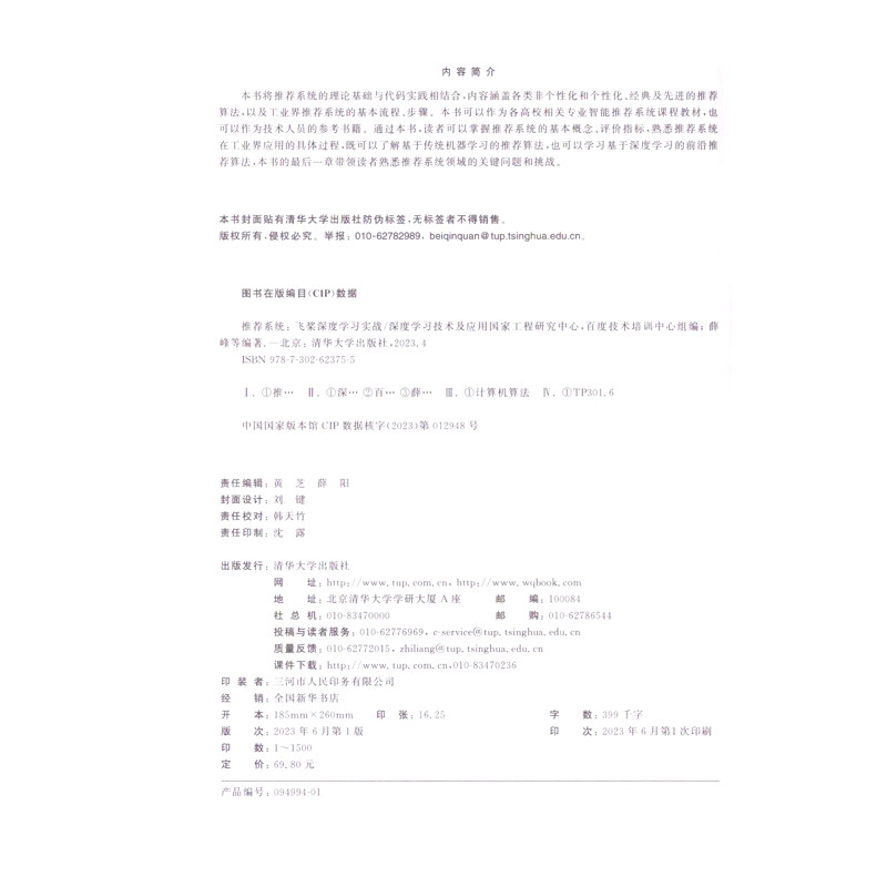推荐理由:推荐系统-飞桨深度学习实战深度学习技术及应用国家工程研究中心 百度操作系统(新)清华大学出版社新华书店正版