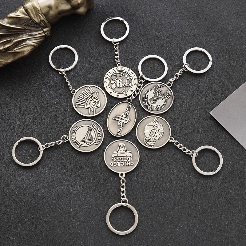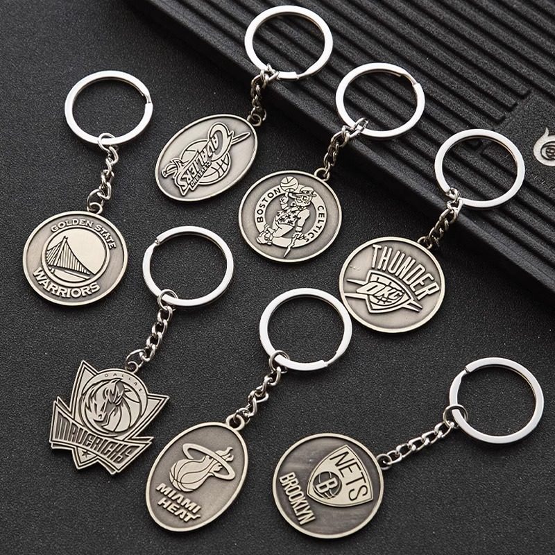 球迷用品金属两面浮雕球队标志钥匙扣湖人勇士篮网独行侠背包挂件
