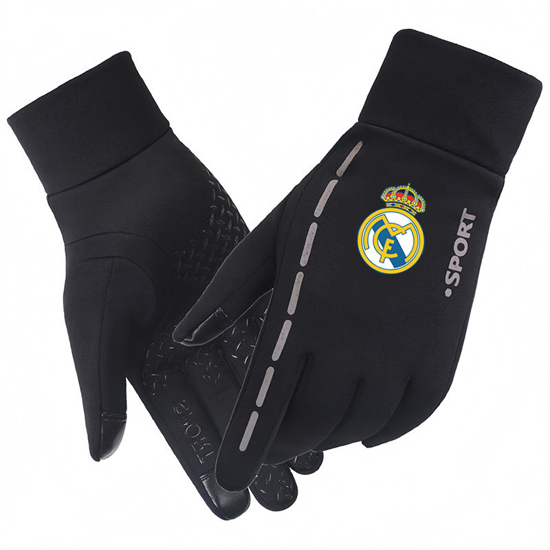 推荐理由:欧冠皇马足球迷户外运动冬季骑行运动加绒手套夜光可触屏防滑手套