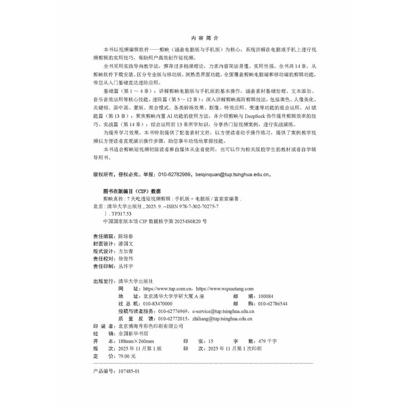 剪映真传:7天吃透短视频剪辑(手机版+电脑版)富索索图形图像/多媒体(新)清华大学出版社凤凰新华书店旗舰店