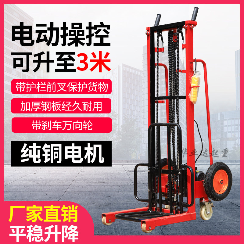 优选电动堆高机220v简易叉车升降机小型叉车升砖机堆垛机摞胎机