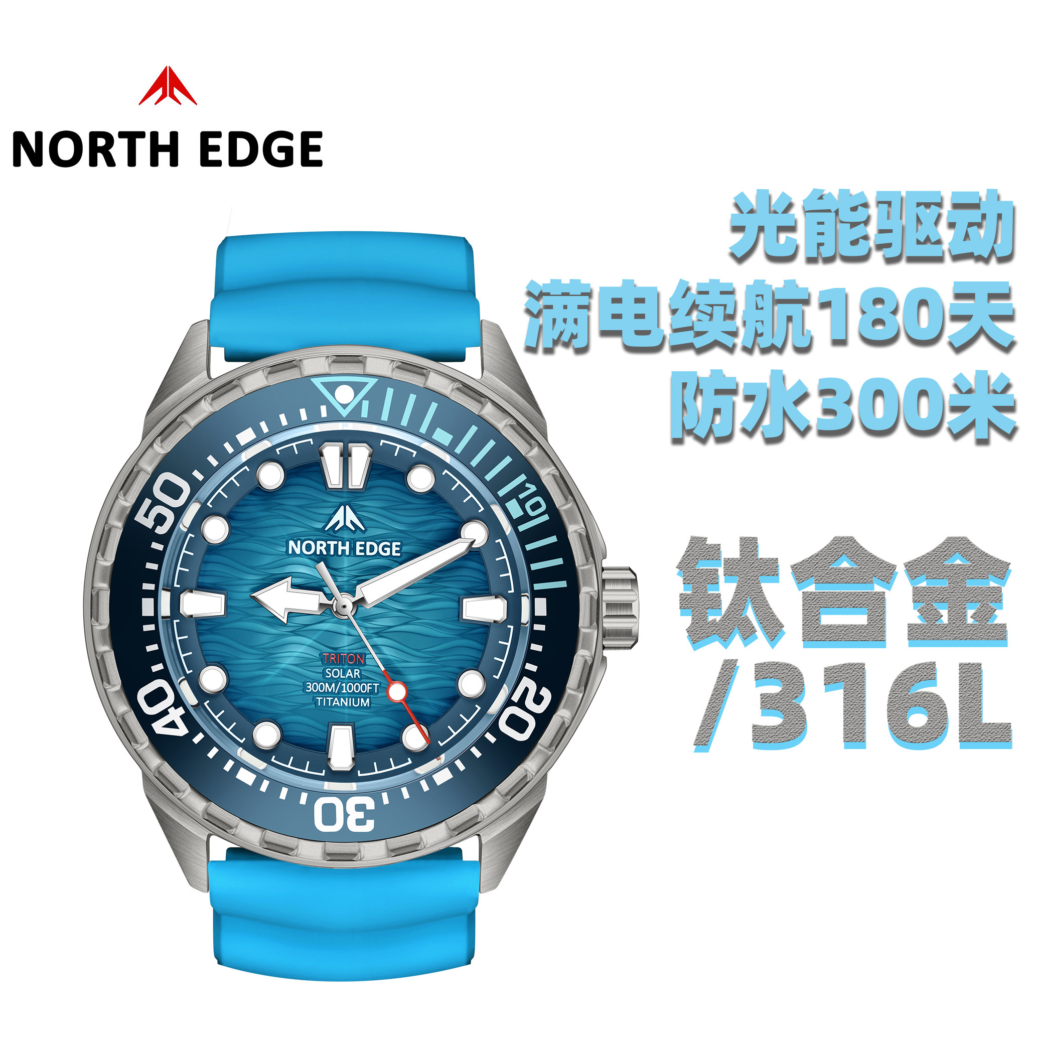 North Edge钛合金2025时尚防水手表300米太阳能续航游泳潜水男