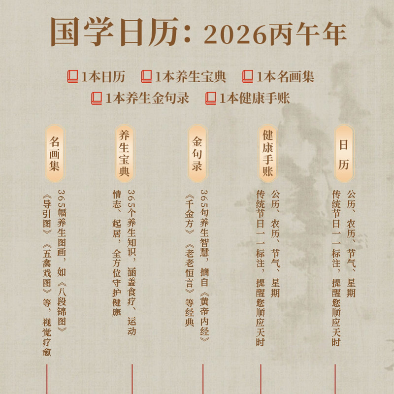 推荐理由:【现货速发】养生国学日历2026年摆件台历创意日历当当自营礼物办工桌手帐商务备忘录笔记本书写计划盒装文创产品善品堂LH