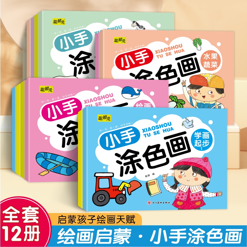 全套12册 聪颖兔系列涂色画附带蒙纸宝贝一看就会儿童学画 幼儿园宝宝卡通简笔画入门启蒙绘画教材 涂色绘本2-3-6岁宝宝画画本涂鸦
