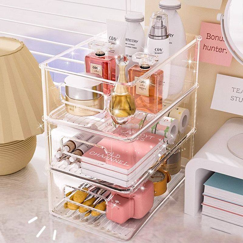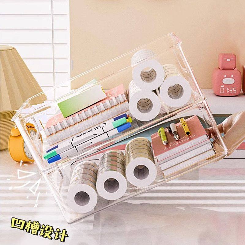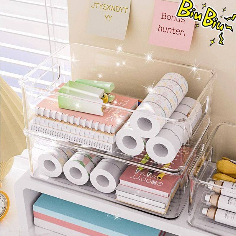 透明整理盒透明桌面收纳盒整理筐化妆品面膜零食宿舍抽屉多层收纳