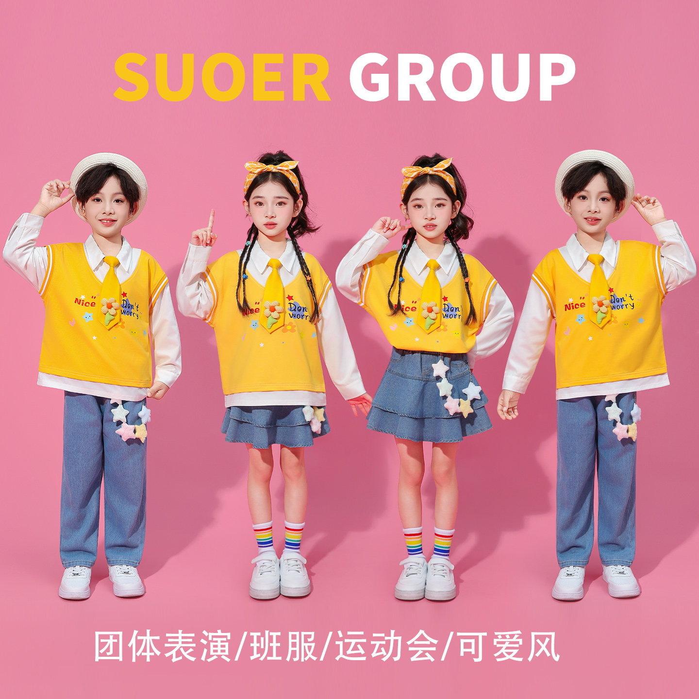 推荐理由:儿童啦啦队演出服小学生运动会开幕式服装幼儿园元旦合唱表演套装