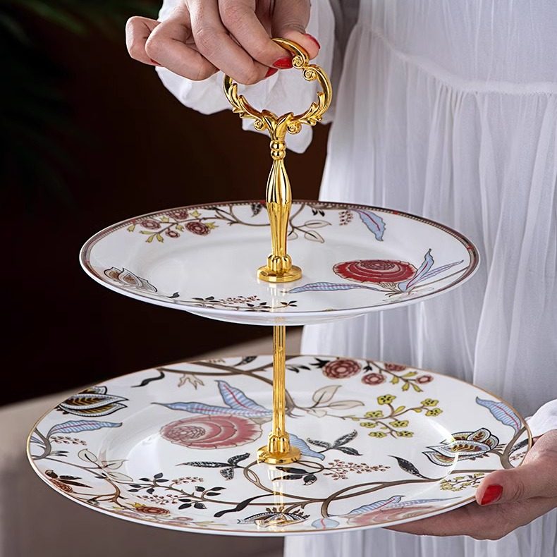 加粗金玫瑰串盘电镀配件金属吊架多层托盘三层点心架子瓷果盘支架