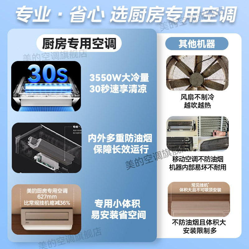 推荐理由:美的小凉方厨房空调专用吸顶式1.5匹家用集成吊顶制冷极地白XD200