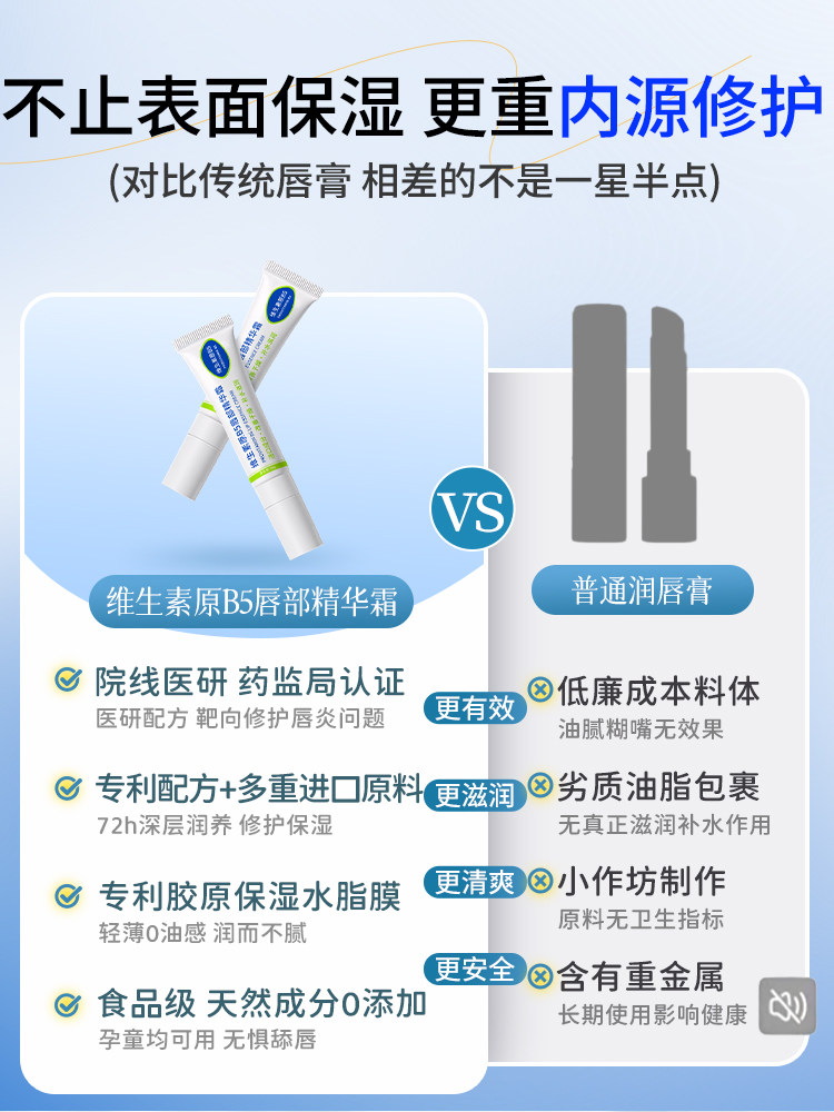 推荐理由:B5唇部精华蜜润唇膏女保湿滋润唇膜啫喱护理防干裂去死皮淡化唇纹
