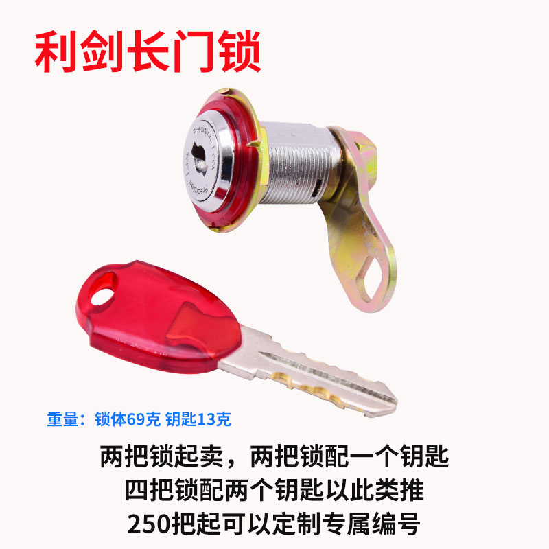 娃娃机柜门锁玻璃门木门通开电玩游艺机配件夹公仔利剑长短通钥匙