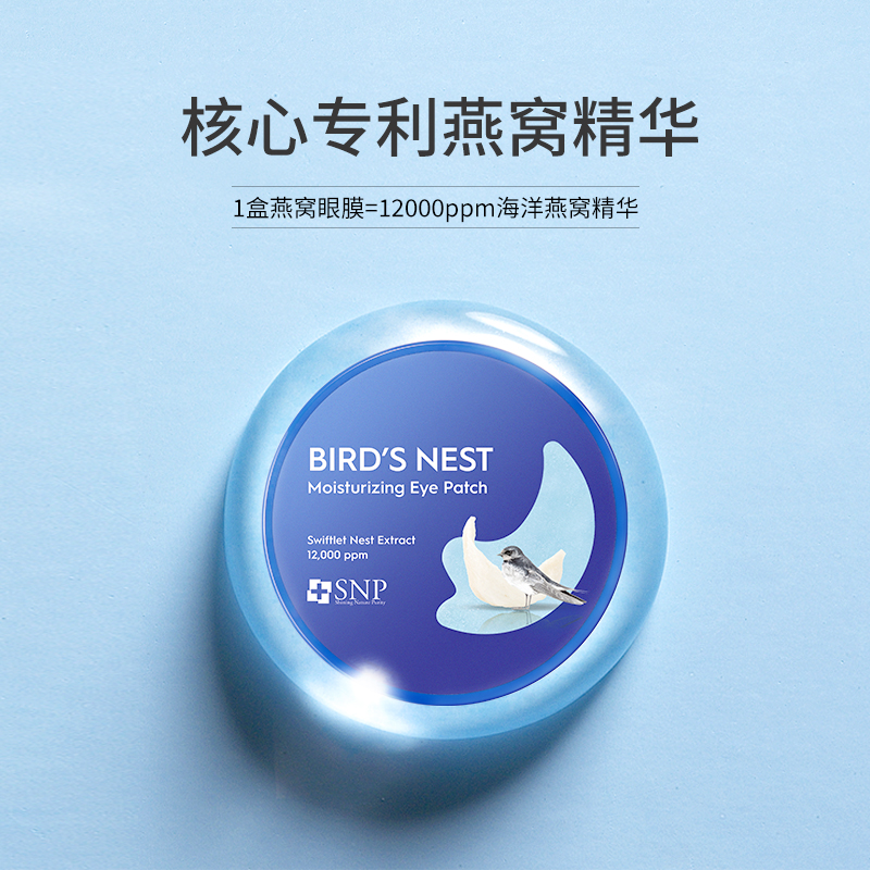 SNP燕窝精华眼膜贴60片/罐 补水保湿滋养淡纹舒缓黑眼圈韩国进口