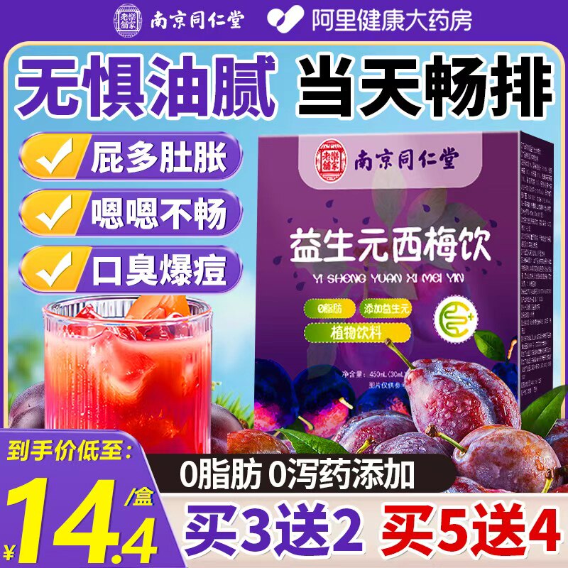 同仁堂浓缩西梅汁益生元菌大餐救星高膳食纤维果饮减脂肠清排宿便