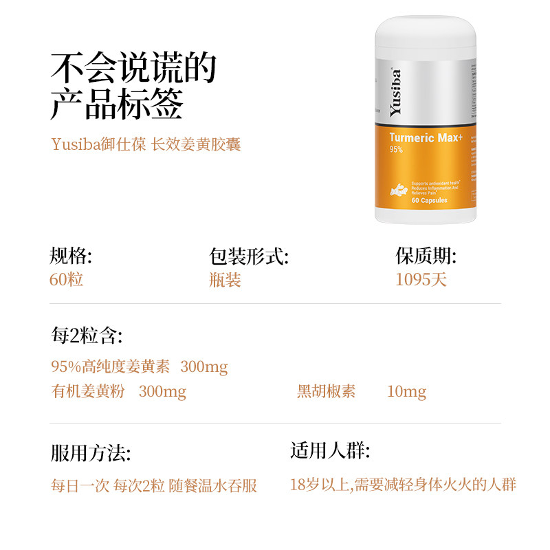 推荐理由:Yusiba姜黄素胶囊美国进口抗炎内服补剂健身抗氧化黑胡椒进口姜黄