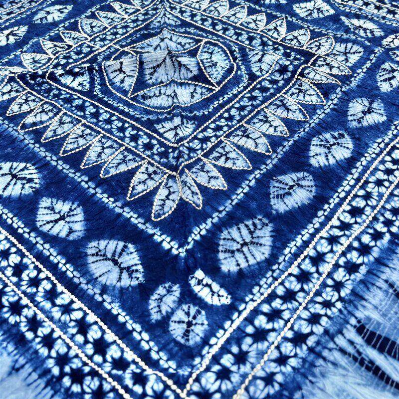 1.2米大理古法扎染桌布云南白族植物蓝染方巾壁挂背景装饰茶几布